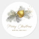 Cet élégant Sticker rond de Noël de style classique présente une décoration ornementée d'ampoules de pin de Noël brillante d'or et blanc. Parfait pour fêter les vacances en style, Personnalisez cet autocollant de vacances avec votre propre nom à envoyer à la famille et les amis.