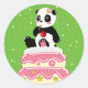 Sticker Rond Soirée / Panda mignonne avec gâteau et cerise