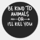 Sticker Rond Sois gentil avec les animaux ou je te tuerai Anima