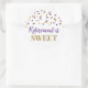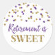 La retraite est une étiquette de faveur douce autocollante avec motif de confetti violet foncé et or.