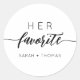 Son autocollant préféré avec calligraphie moderne pour sac de bienvenue de mariage. Le design présente une mise en page de texte script de style moderne. Pour apporter des modifications avancées, veuillez sélectionner l'option "Cliquez pour personnaliser davantage" sous Personnaliser ce modèle.