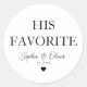 Un Sticker Mariage classique en Merci noir avec "Son Favori" dans une police classique moderne et élégante. Vous pouvez facilement le personnaliser avec vos noms et date mariage.
