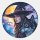 Sticker Rond Sorcière avec un loup - Halloween Fun 1