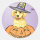 C'est l'heure du plaisir d'Halloween ! Faites un Trick ou traitez avec cette mignonne sorcière chiot du Yellow Lab dans un Jack-o-Lantern souriant. Grand cadeau pour les enfants de tous âges qui aiment Labrador Retrievers et Halloween. Joyeux Howl-oween !