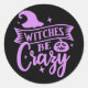 Sticker Rond Sorcières être fou noir et violet