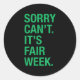 Sticker Rond Sorry Can't It's Fair Week Funny County Fair Gift