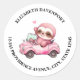 Sticker Rond Sourire rose Sloth conduisant une adresse converti