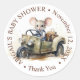 Élégants et amusants, ces stickers de baby shower d'ours à eau mignon correspondent à nos invitations de baby showers d'automne ou d'hiver et sont la façon parfaite de dire merci à tous ceux qui ont assisté à votre baby shower. Le design comprend une souris à aquarelle peinte à la main et qui conduit une voiture verte et un tex qui peut être customisé pour répondre à vos besoins de planification de fête. Félicitations pour le nouveau bébé !