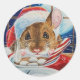 Sticker Rond Souris Santa Field avec Cocoa chaud Aquarelle Art
