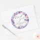 Personnalisez ces étiquettes autocollantes rondes chic invitation avec votre propre texte facilement et rapidement, il suffit d'appuyer sur le bouton personnaliser pour réorganiser et formater le style et l'emplacement du texte. Caractéristiques d'une jolie sirène, hippocampe, coraux et coquillages dans un schéma de couleur violet, turquoise et rose. Articles assortis disponibles en magasin ! (c) The Happy Cat Studio.