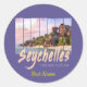 Seychelles Océan Indien La Digue Anse Source d'Argent plage avec palmier au coucher du soleil. souvenir de vacances pour les voyageurs africains et mahe. Design de vacances vintage Océan Indien Seychelles pour les amoureux des îles. Vous pouvez facilement customiser et personnaliser la conception en entrant le nom que vous voulez.
