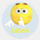 L'emoji jaune classique "soit" émoticône tranquille d'expression du visage de bande dessinée avec les lettres SSSHH. Prenez certains de ces autocollants de qualité aujourd'hui !