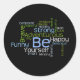 Cet autocollant rond personnalisé présente un design de texte inspirant populaire qui est aussi appelé un nuage de mots. Le sujet principal est 'Be' et les autres mots sont inspirants pour nous aider à nous aider à être le meilleur que nous puissions être! Les couleurs du texte sont bleu, vert et blanc apaisant sur un arrière - plan noir. Parfait pour les adolescents qui pourraient utiliser un stimulant de confiance. Tous les produits sont faciles à customiser. Conçu par Nature's Essence in Print. Image152