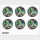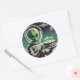 Sticker Rond Space Alien with Birthday Cake UFO Flying Saucer