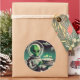 This delightfully weird set of stickers features a vintage-style illustration of a green space alien holding a birthday cake, glowing with lit candles as it stands under a cosmic sky filled with stars, birthday balloons, and a mysterious hovering UFO. It’s an unexpected and totally charming blend of pop surrealism, lowbrow art, retro science fiction, and interstellar whimsy—perfect for anyone who thinks birthdays should be just a little stranger. The alien itself, with its oversized head and expressionless face, stands stoically yet somehow sweetly, as if it’s traveled light years to crash your party with cake in hand. This is the kind of image that walks the line between heartfelt and hilariously uncanny—both celebratory and deeply odd in the best way.