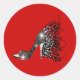 Sticker Rond Sparkling Black Stiletto sur rouge