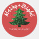 Sticker Rond Sparkly Merry bright Christmas tree Custom name