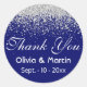 Cet autocollant rond moderne présente un éclat de parties scintillant d'argent sur un riche arrière - plan bleu royal. Vous pouvez modifier la police et le texte en cliquant sur le lien personnaliser. Cela fait partie d'une suite mariage correspondante que vous pouvez entièrement personnaliser.