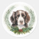 Sticker Rond Springer spaniel Noël Wreath Festive Pup