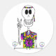 Sticker Rond Squelette mignon Hippie en Teinte avec Paix