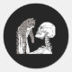 Sticker Rond Squelette tenant un chat Lazy Costume d'Halloween