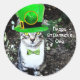 STICKER ROND ST PATRICK'S DAY CHAT AVEC LE CASQUETTE LEPRECHAUN