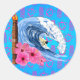 Sticker Rond Statue De Surfer Et Tiki