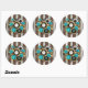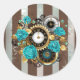 Sticker Rond Steampunk Clock and Turquoise Roses on Striped