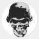 Design crânien portant un casque de guerre allemand, regardant vers le bas.