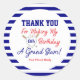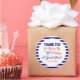 Stickers Bleu et Rouge rond de la fête d'anniversaire de baseball. Ajoutez cet autocollant sportif "Merci" à votre soirée de baseball ! Utilisez cet autocollant de fête d'anniversaire de baseball comme étiquettes de faveur sur vos sacs de gâterie ou placez-le juste à l'arrière des cartes de remerciement de baseball correspondantes que vous envoyez! Vous pouvez obtenir d'autres fournitures pour les parties correspondantes : à l'adresse TKM Party Printables Zazzle shop —> www.zazzle.com/store/tkm_party_printables ou sur notre site Web de parties imprimables sécurisé —> www.tkmpartyprintables.com