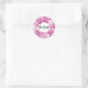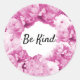 Jolie couronne de fleurs monochromes rose avec le message "sois gentil" au centre.