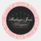 Sticker rond Mackenzie Rose & Noir Damask Chic. Pour la customiser, cliquez sur le bouton Customiser! Conception web correspondante disponible! Voir en direct sur notre web design studio BoutiqueMama.com