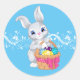 Cet autocollant rond est montré dans un lapin de Pâques festif avec des oeufs imprimés dans une belle couleur bleu ciel. Customisez cet objet ou achetez tel quel.