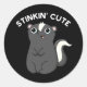 Sticker Rond Stinkin Cute Funny Skunk Pun Dark BG