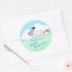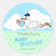 Sticker Rond Stork avec un mignon petit bébé garçon