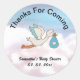 Ajoutez une touche douce à vos faveurs de baby shower avec ce charmant autocollant rond avec un oiseau de cigogne volant et un arrière - plan de nuage doux. Parfait pour sceller des sacs-cadeaux, des faveurs de fête ou des enveloppes, ce design comprend le message sincère "Merci d'être venu" — idéal pour les célébrations de bébé garçon, fille, ou genre neutre.
