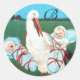 Sticker Rond STORK TWIN BÉBÉ DOUCHE GARÇON, bleu turquoise