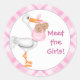 Sticker Rond Stork & Twin Girls (peau foncée) Baby Faire-part