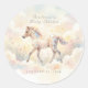 Celebrate your little one’s arrival with a touch of fairytale wonder. Part of our curated Storybook Magic Enchanted Forest collection, these round stickers features a dreamy watercolor illustration of a whimsical horses playing amidst an ethereal woodland setting.
