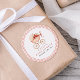 This adorable circular sticker features our cute blush pink vintage pram brimming with watercolor strawberries and tiny white blossoms and a sweet pink bow - perfectly framed by a soft pink gingham border. Personalized with the baby shower details, this thoughtful sticker is as lovely to look at as it is to use.