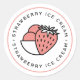 Strawberry ice cream flavor homemade cute fresh fruit strawberries flavored pink retro cottagecore aesthetic minimal white round sticker circular label tag bundle pack set.