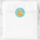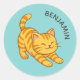 Sticker Rond Stretching Orange Tabby Cat Green Custom Name