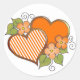Deux coeurs ornés d'or et remplis d'un joli motif rayé orange et blanc et décorés de trois fleurs assorties.
