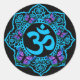 Sticker Rond Style mandala bleu ohm avec papillons violets