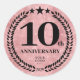 stickers ronds style parties scintillant rose 10e anniversaire avec un logo d'entreprise. Design décoratif avec une branche de laurier et des étoiles. Le logo peut être modifié en texte en cliquant sur le bouton pour modifier la conception.
