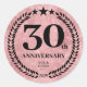 stickers ronds de style parties scintillant rose à 30e anniversaire avec un logo d'entreprise. Design décoratif avec une branche de laurier et des étoiles. Le logo peut être modifié en texte en cliquant sur le bouton pour modifier la conception.