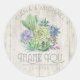 Des polices uniques, des succulents colorés à l'aquarelle et des arrière - plans rustiques en planches de bois sont les points forts de ces produits mariages mélangés et assortis. Ce bel autocollant contient du texte "Merci" en option ainsi qu'un modèle pour modifier les initiales de la mariée et du marié, un message personnel et votre date de mariage. Recherchez ID515 pour voir tous les produits correspondants dans ce jeu.