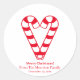 Sticker Rond Sucre de canne de Noël rouge blanc nom personnalis