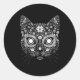 Sticker Rond Sugar Cat Skull Flower Artistic Design