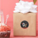 Vintage Sugar Skull Wedding Favor Sticker designed with a romantic sugar skull couple and lush red roses on a bold black background. These round wedding stickers coordinate beautifully with the Vintage Red Sugar Skull Collection and add dramatic flair to your celebration details.